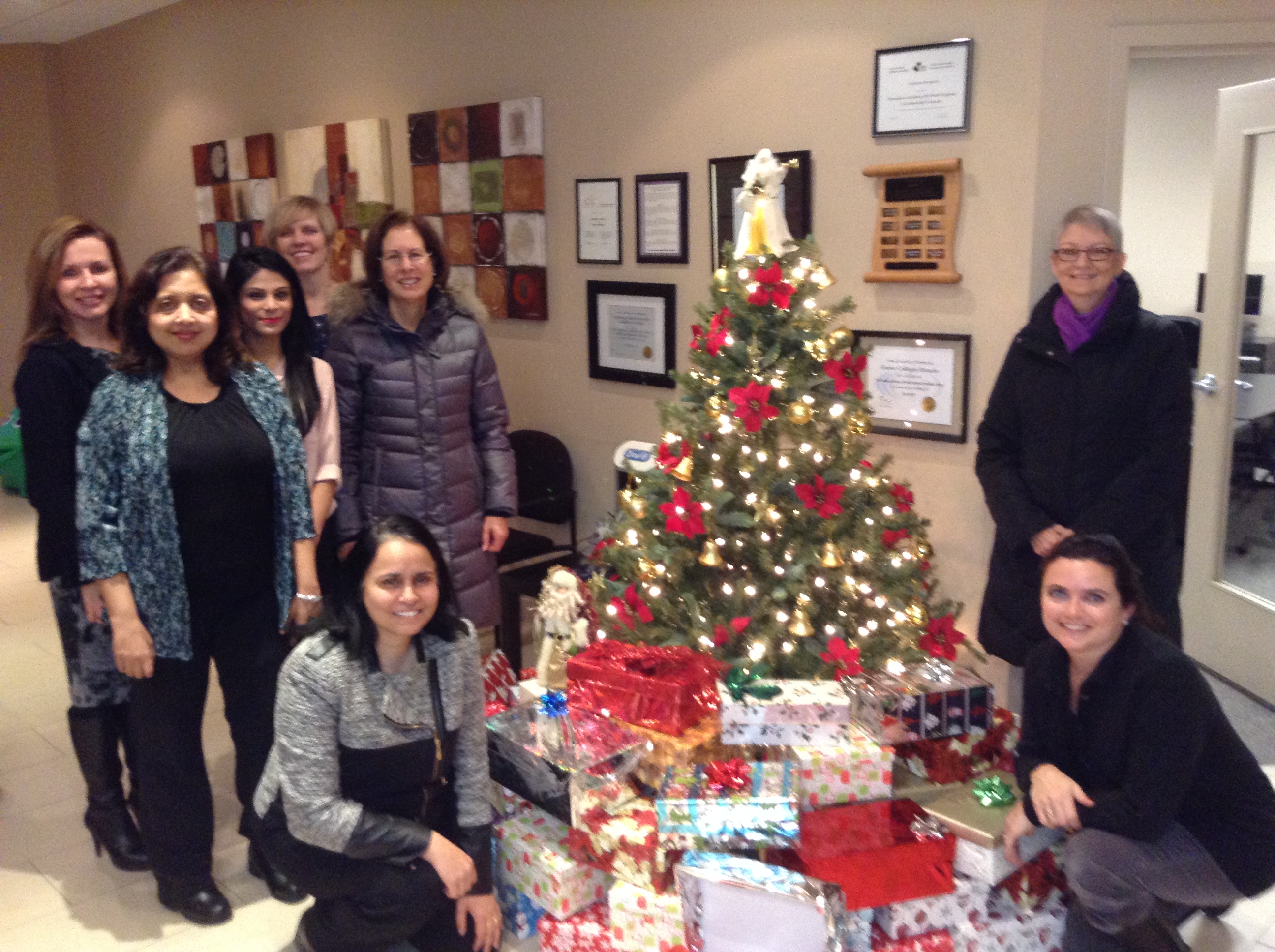 In an effort to help our community, for the second year in a row, the faculty, staff and students of CADH launched wholeheartedly into a�?Operation Shoebox modea�? beginning in early November, 2014 and what an a�?operationa�? it was!! Weeks of collecting everything from mittens to socks to toiletries to chocolates culminated in the accumulation of enough lovely little things to fill 59 beautifully wrapped shoe boxes for Mississauga area womena��s shelters!A� A�Our donation was heart-warming